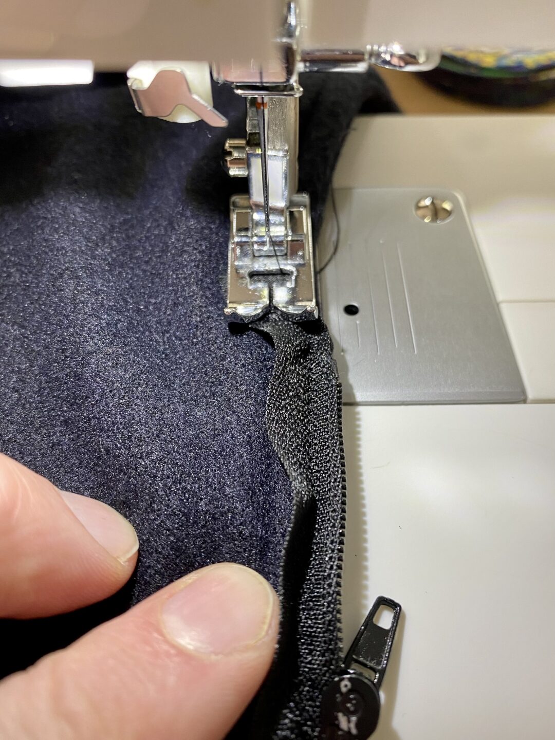 - Zet een tweede steek op de rits om het opstaande deel glad te krijgen.